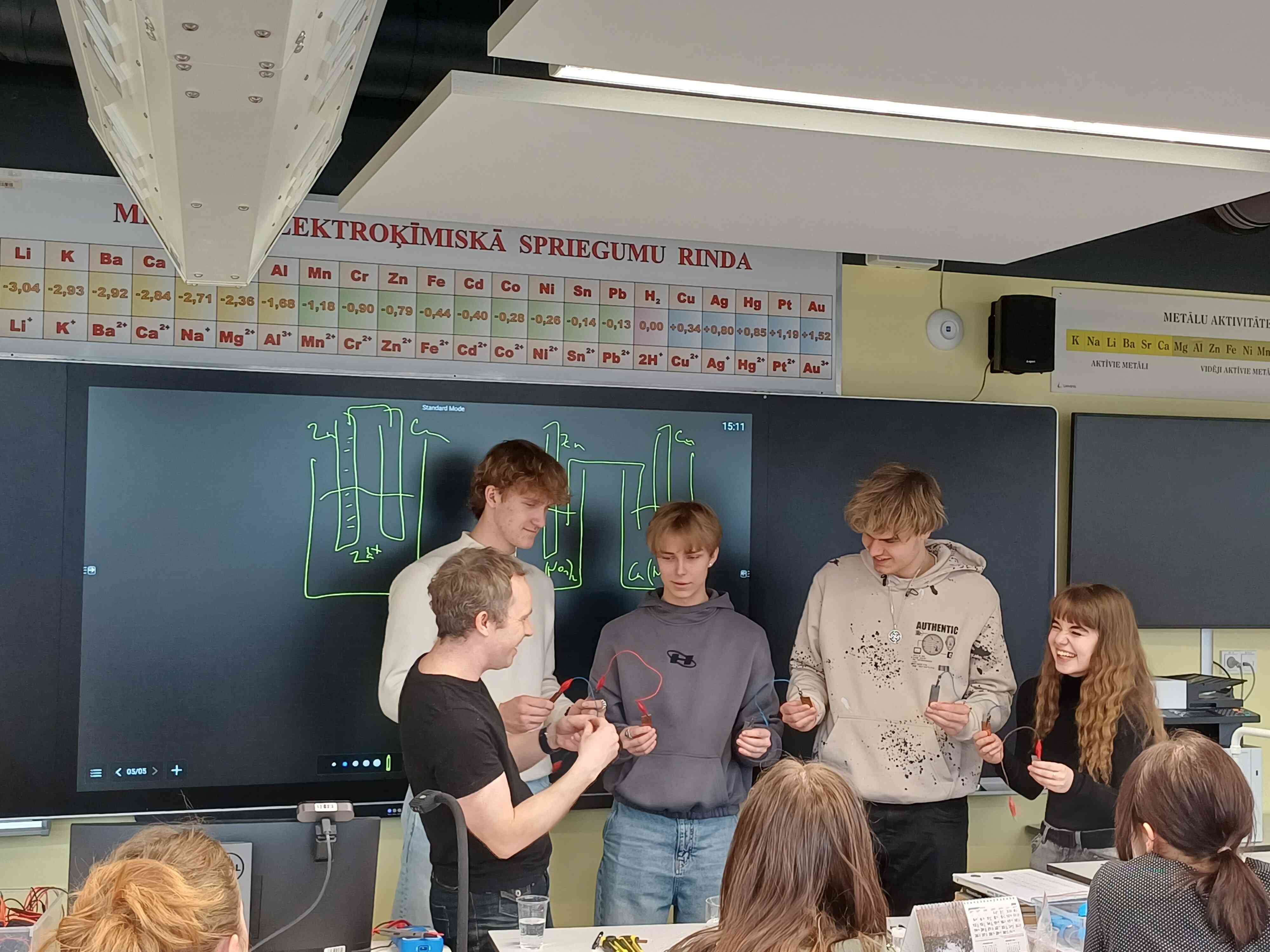Skolēni praktiski apguva zināšanas par metālu elektroķīmisko spriegumu rindu un to kā elektrolīzi var izmantot, lai attīrītu vai pārklātu metālus, iegūstot sev vēlamo rezultātu.